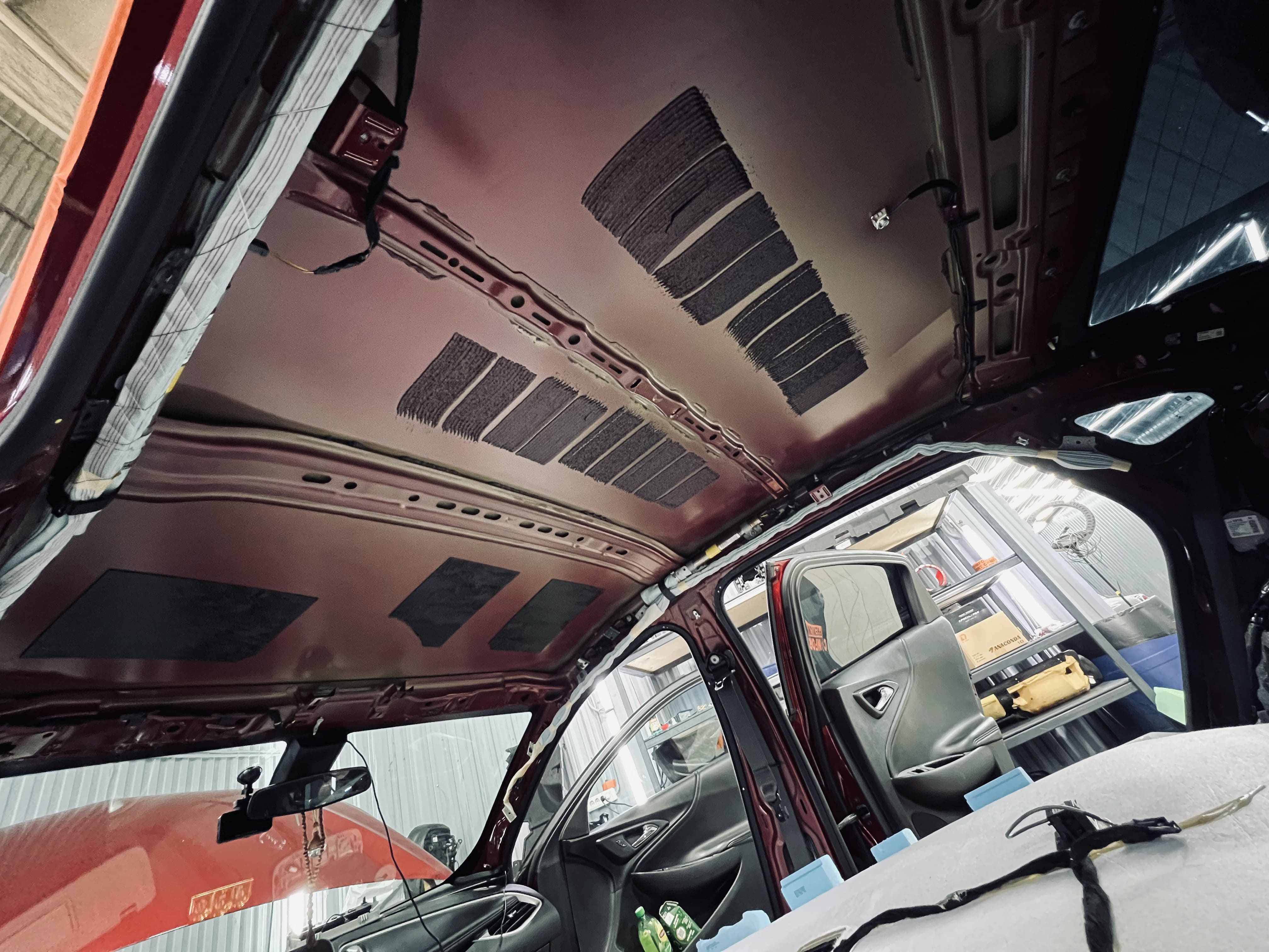 Крыша автомобиля часто пропускает шум ветра и дождя. Мы обработали ее в два слоя, чтобы обеспечить тишину в салоне даже в непогоду.