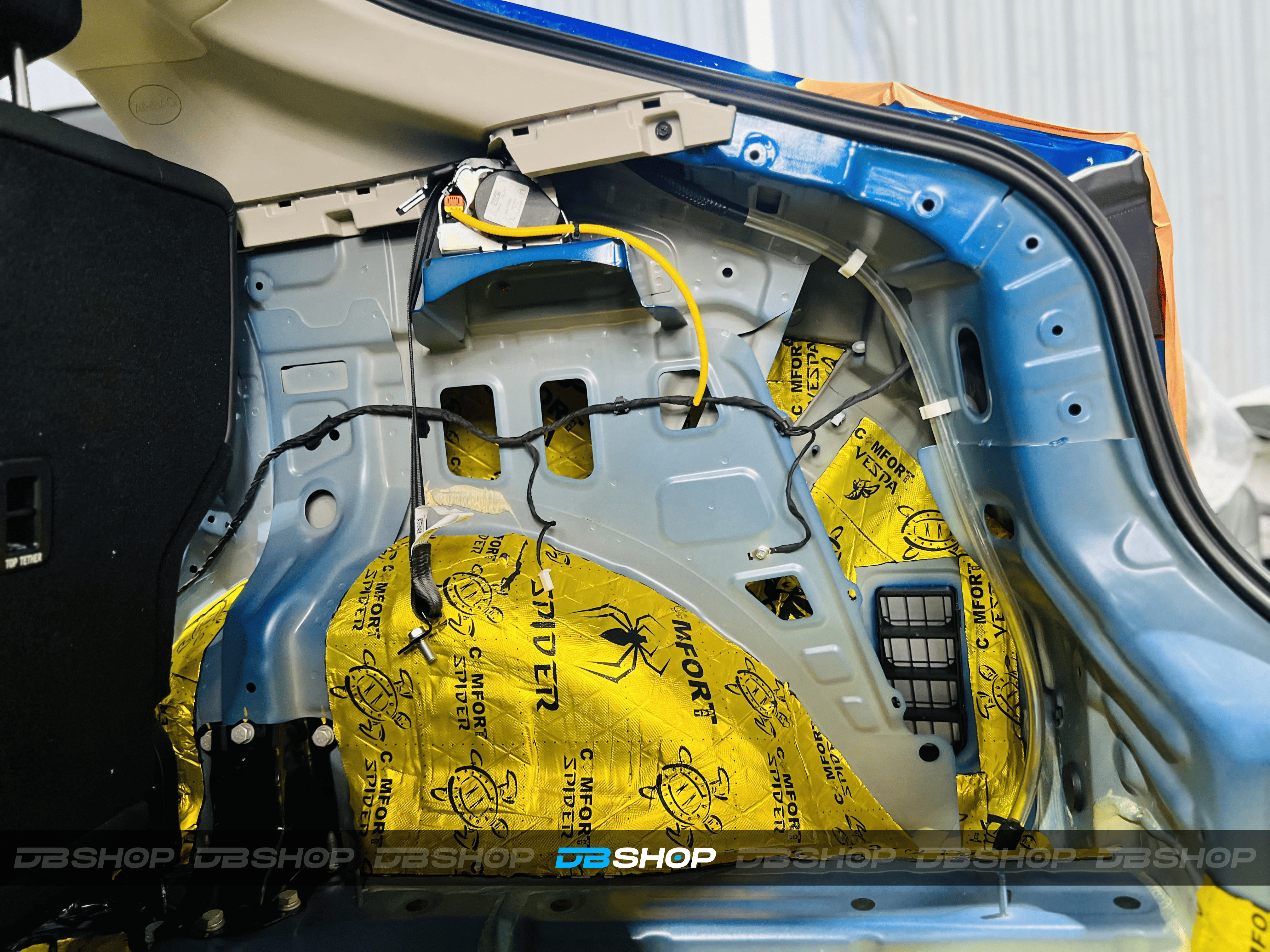 Первым слоем на дно салона и багажник нанесли виброизоляцию Comfort Mat Spider. Универсальный вибродемпфирующий материал толщиной 3,5 мм с повышенной адгезией к металлу.