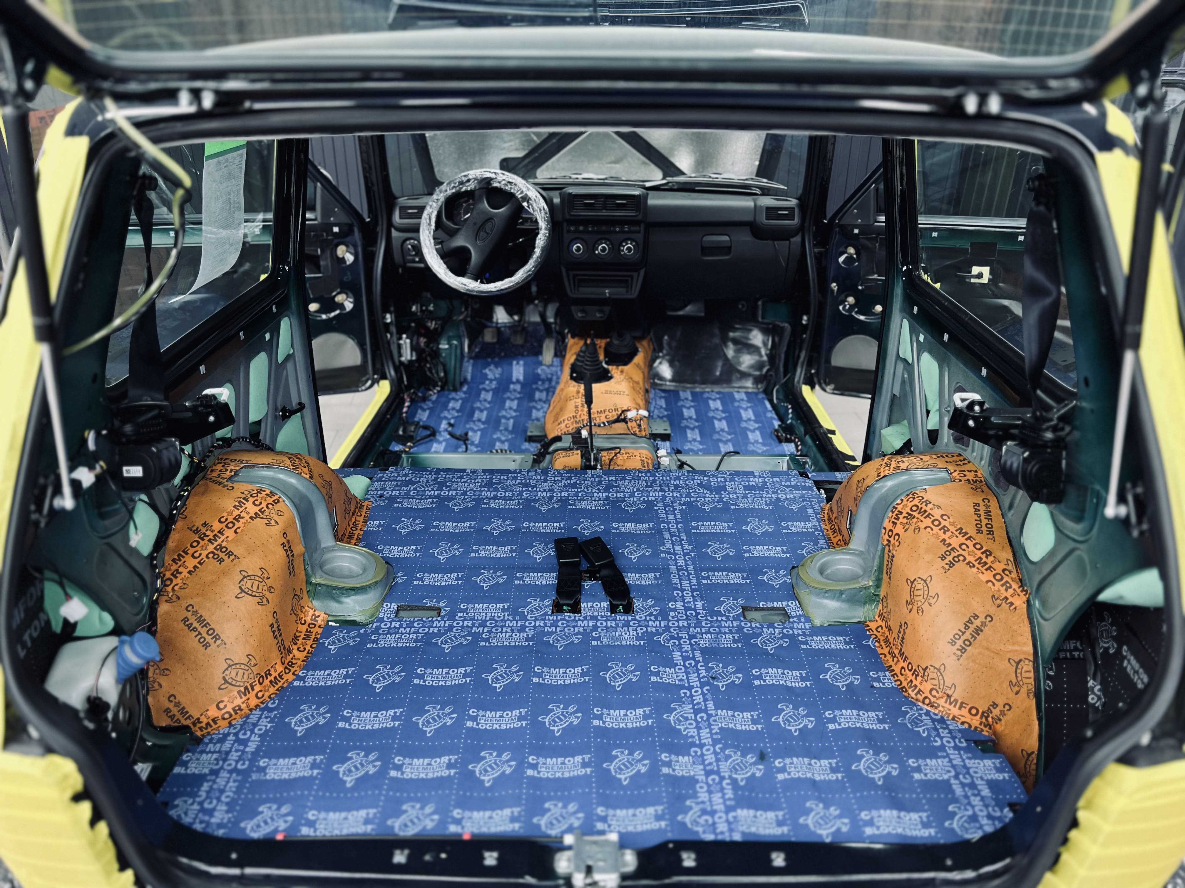 LADA Niva – легендарный внедорожник, покоряющий бездорожье с непревзойденной надежностью, но шум от двигателя, дороги и вибраций может снижать удовольствие от поездок. Мы покажем, как превратить салон Niva в оазис тишины, обработав днище, двери, багажник, крышу и торпедо с помощью материалов Comfort Mat. Наши фотографии этапов работы раскроют секрет идеального акустического комфорта!