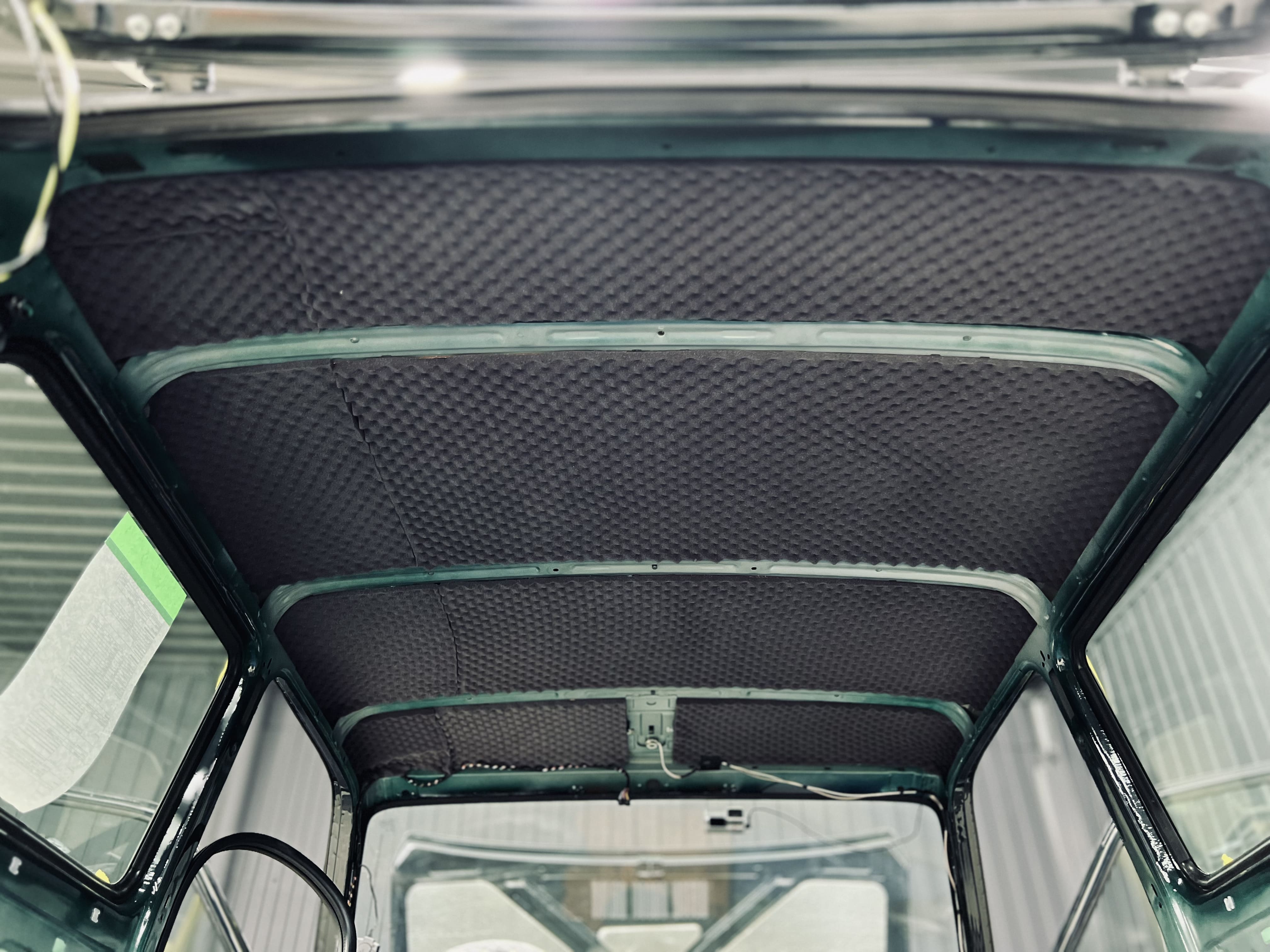 Работа началась с демонтажа потолочной обшивки, обнажив металлическую поверхность, мы подготовили крышу к шумоизоляции.