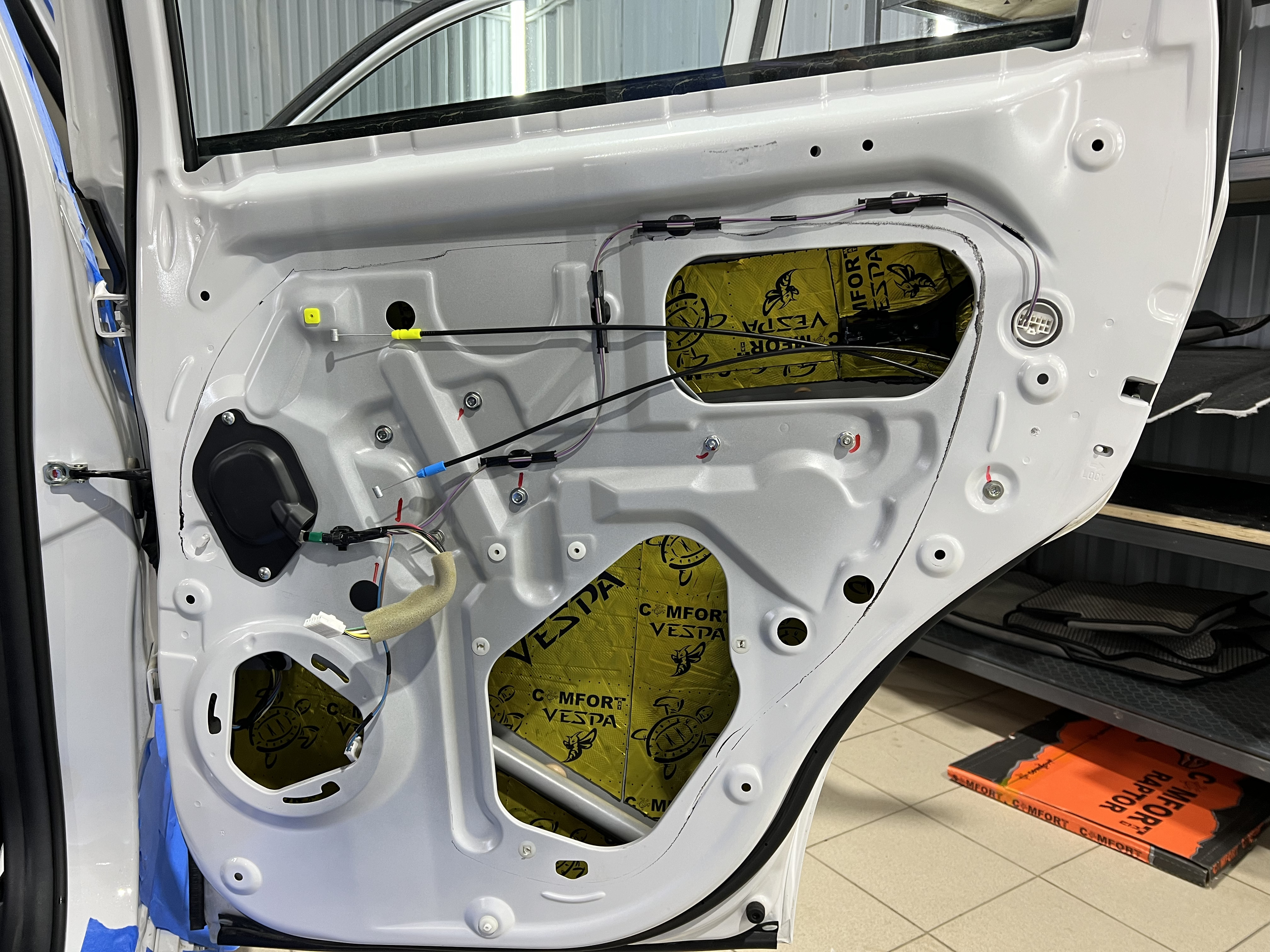 Для дверей и двери багажника использовали Шумоизоляция Comfort Mat Vespa, которая эффективно поглощает шумы и добавляет теплоизоляцию.
