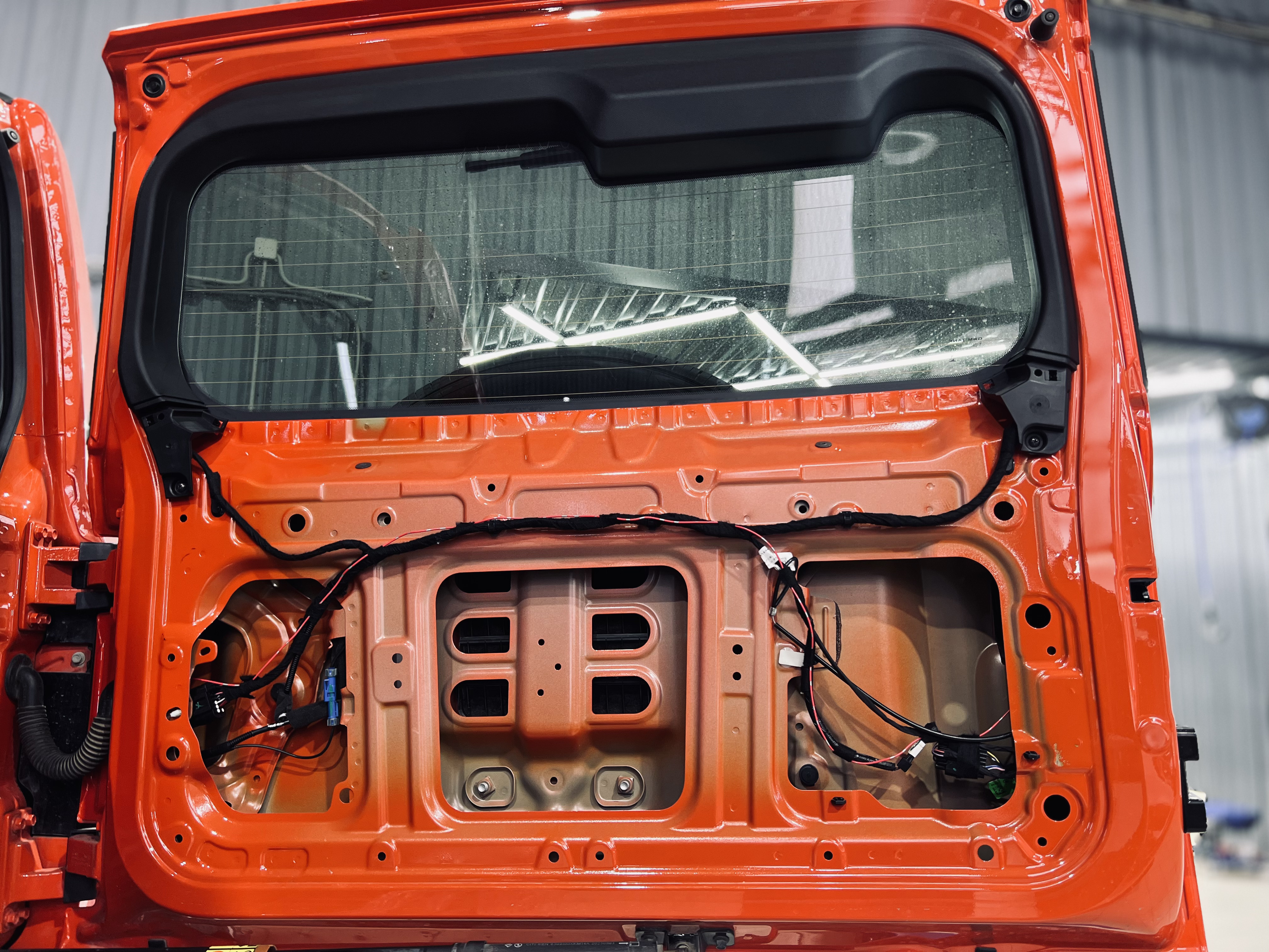 Дверь багажника получила такую же шумоизоляцию, как и двери. На фото показана дверь багажника с наклеенным слоем Cobra и идеально вырезанным Тишина Volna, обеспечивающим максимальное поглощение шума.