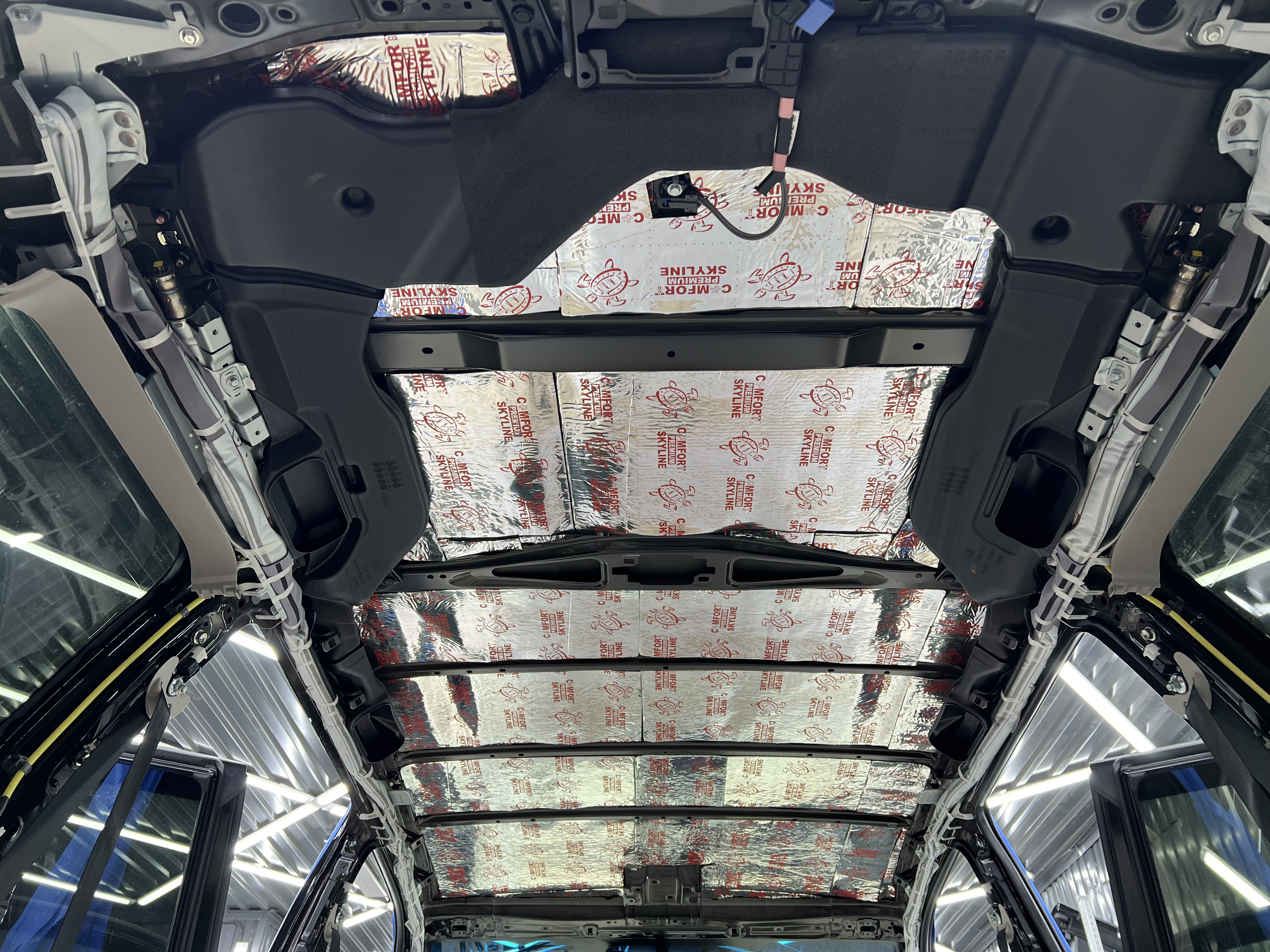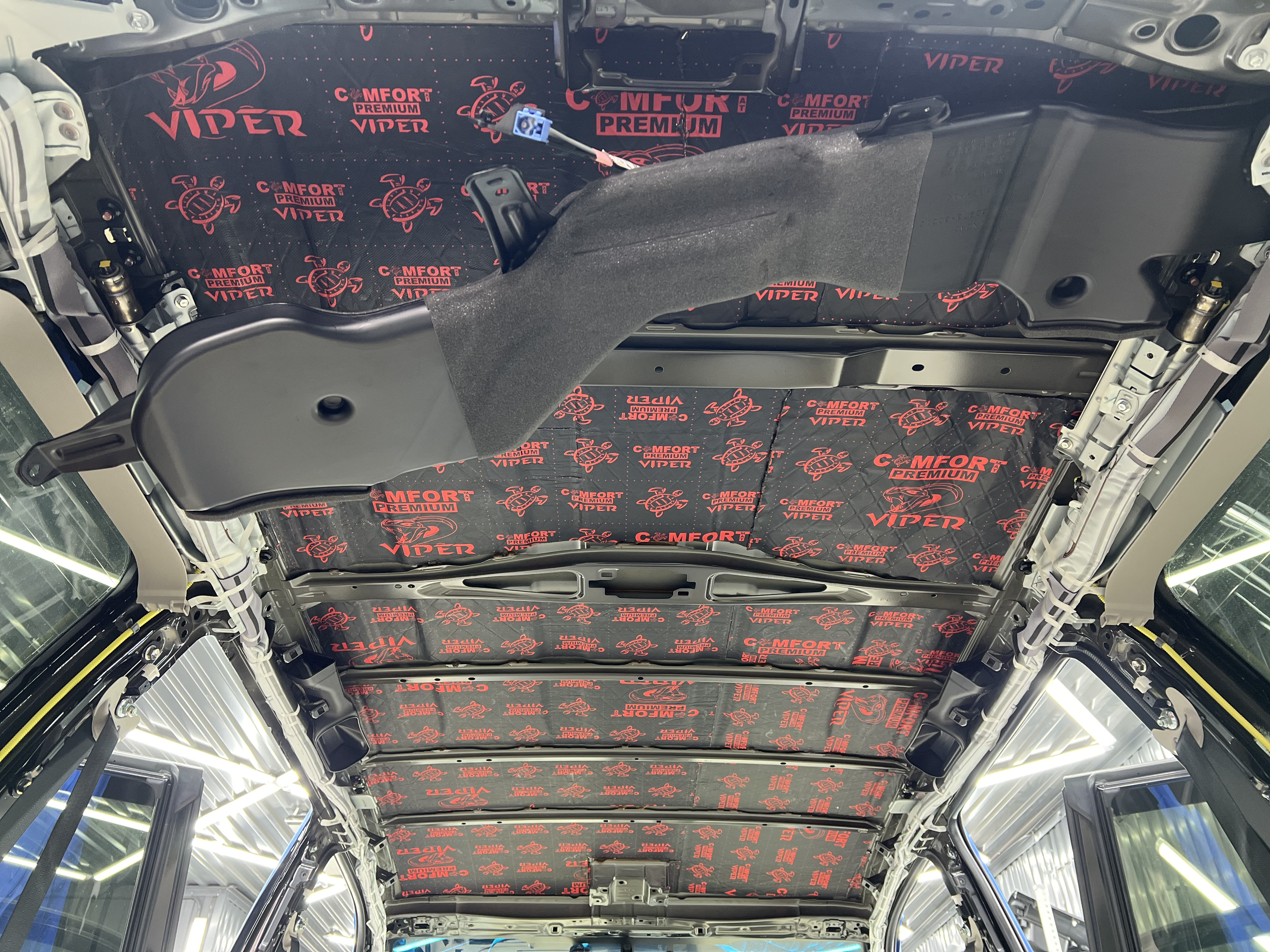 Крыша автомобиля часто пропускает шум ветра и дождя. Мы обработали ее в два слоя, чтобы обеспечить тишину в салоне даже в непогоду.