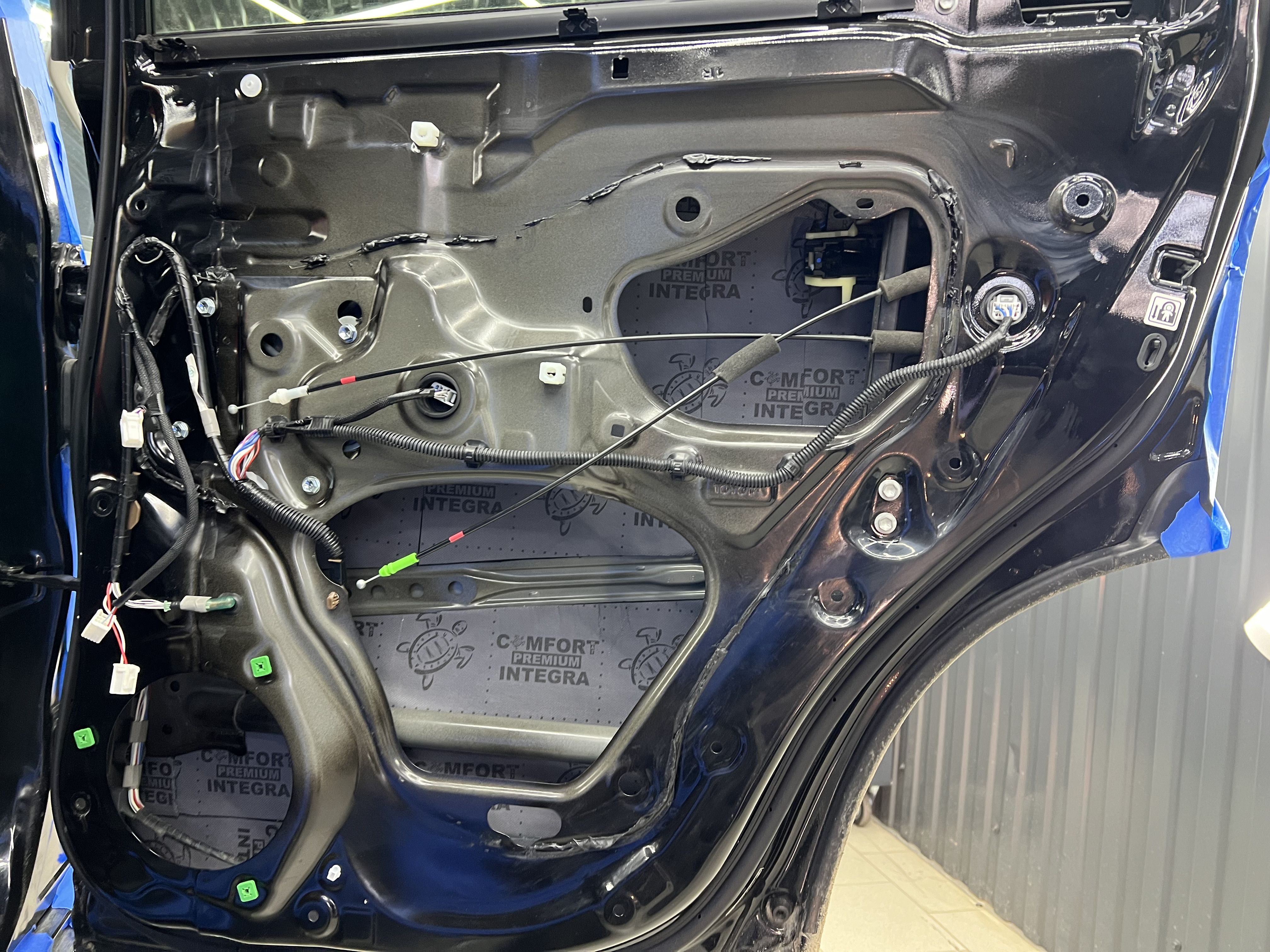 Вторым слоем на все двери уложили Шумоизоляцию Comfort Mat Integra, поглощающую внешние шумы.