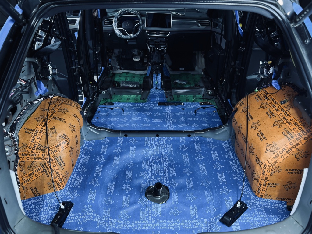 Особое внимание уделили зоне над колесными арками в багажнике, где применили Comfort Mat Raptor, а внутри стенок багажника – Comfort Mat Felton.